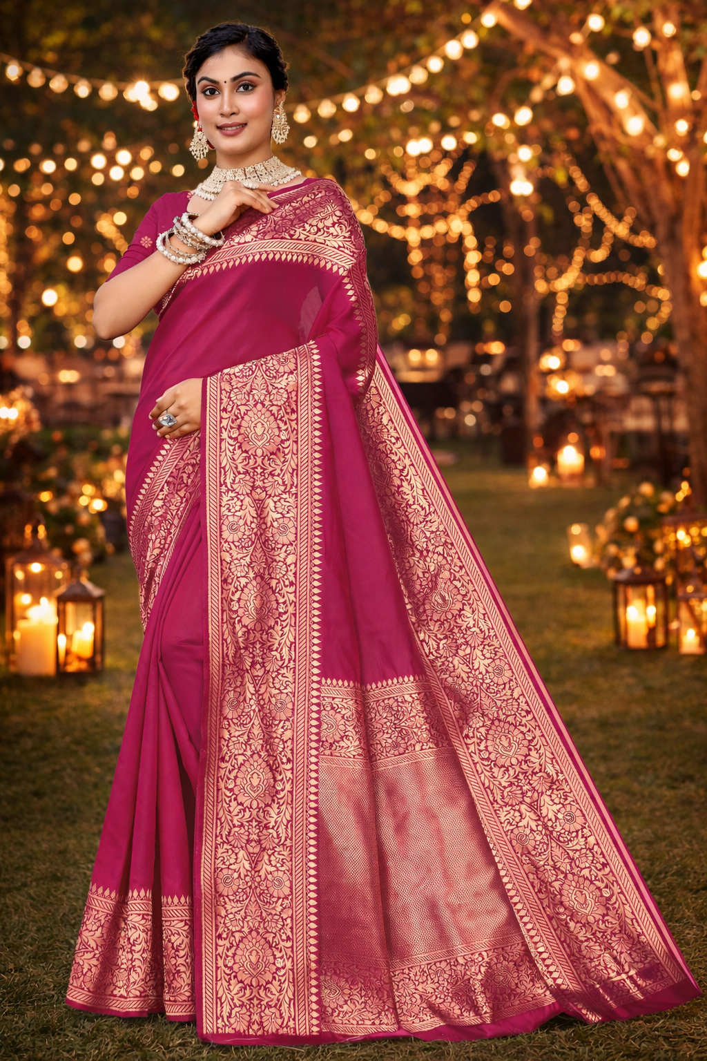Kanjivaram Cotton Silk Saree for Women with Zari Border | Traditional Indian Saree with Unstitched Blouse Piece | Lightweight Festival Wear Saree | Elegant Soft Cotton Silk Saree Magenta Pink