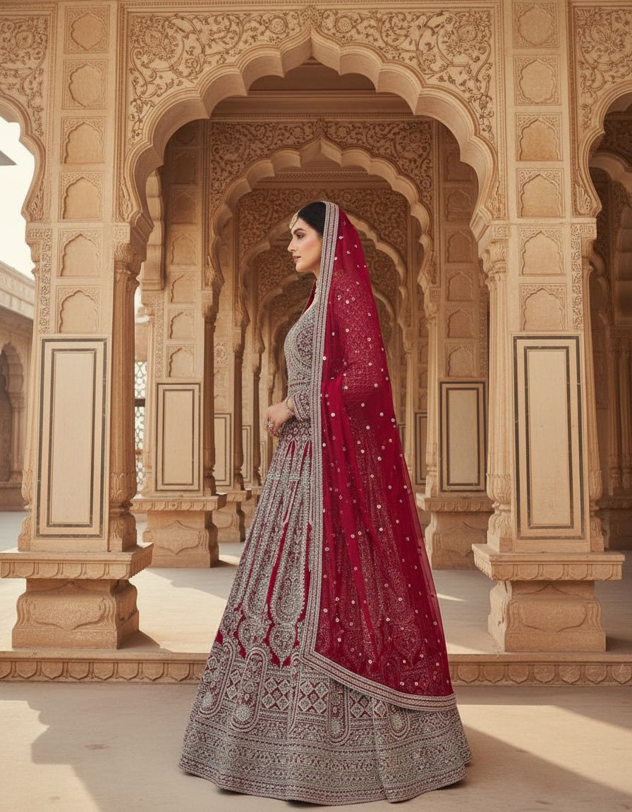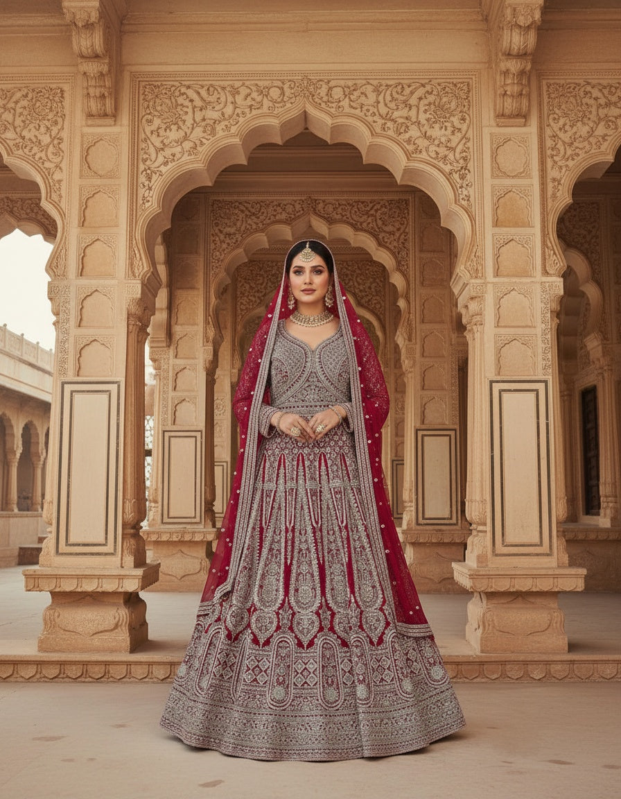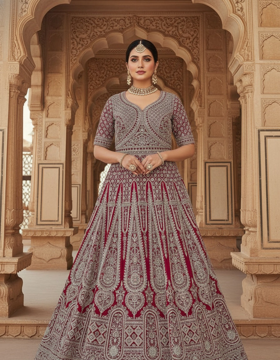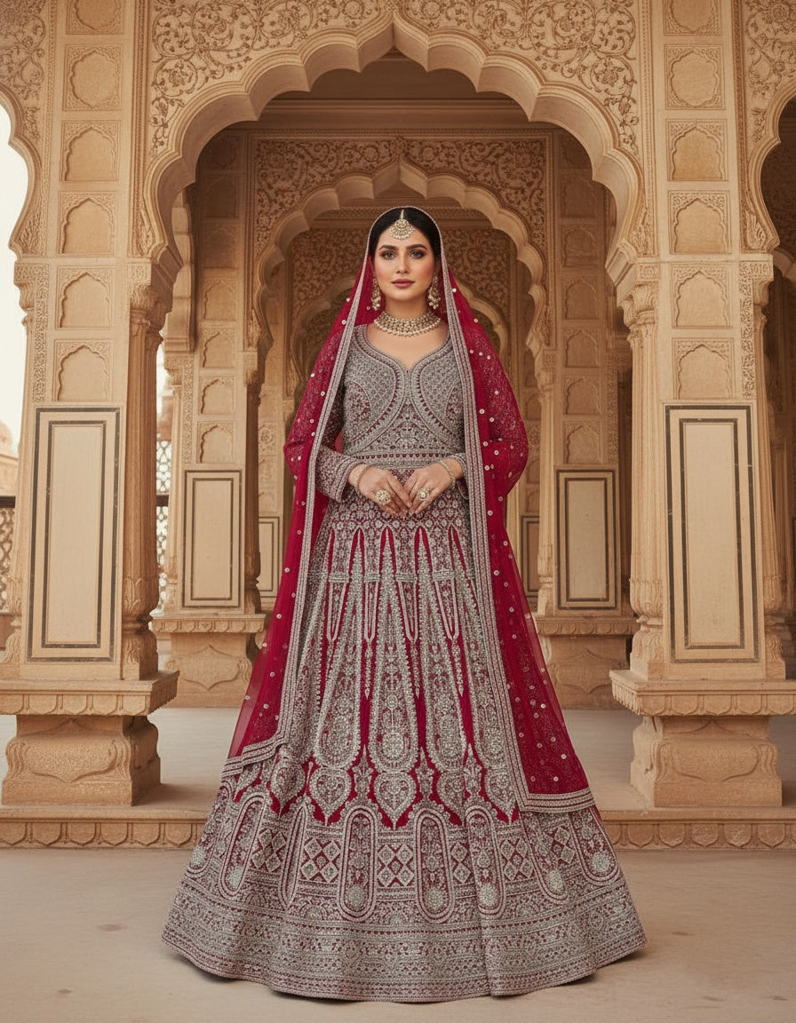 Women’s Georgette Embroidered Siroski Long Gown with Dupatta | Designer Wedding & Bridal Party Wear Ethnic Gown