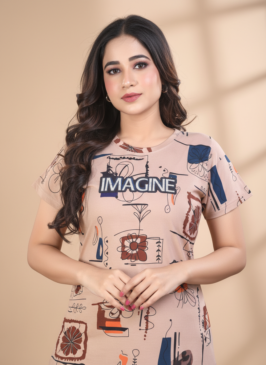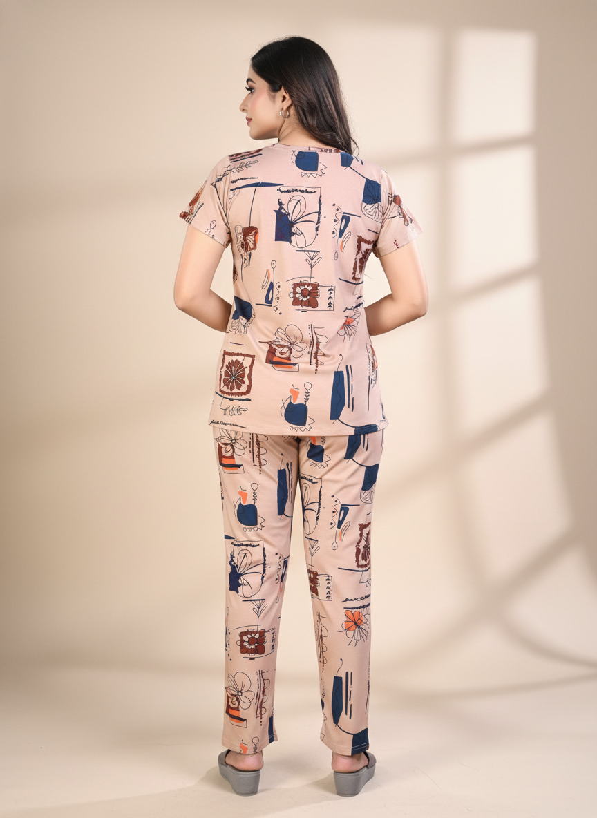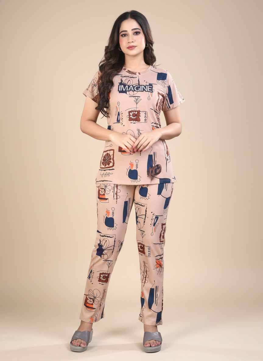 Owlsky Women Blush Pink Typographic Printed Hosiery Cotton Nightsuit