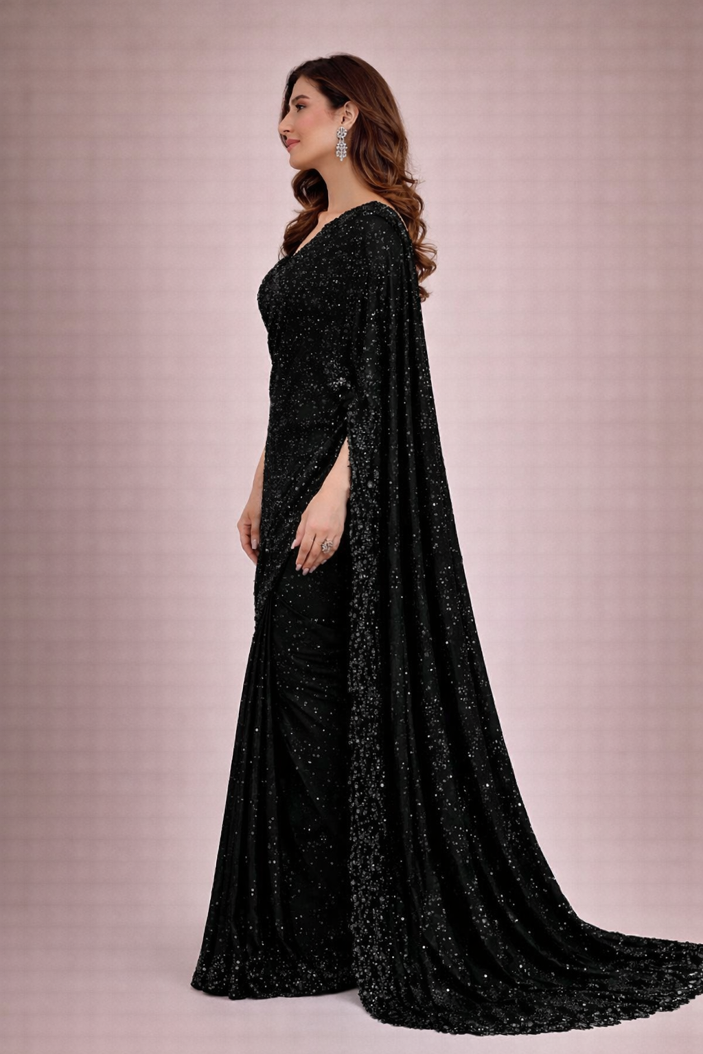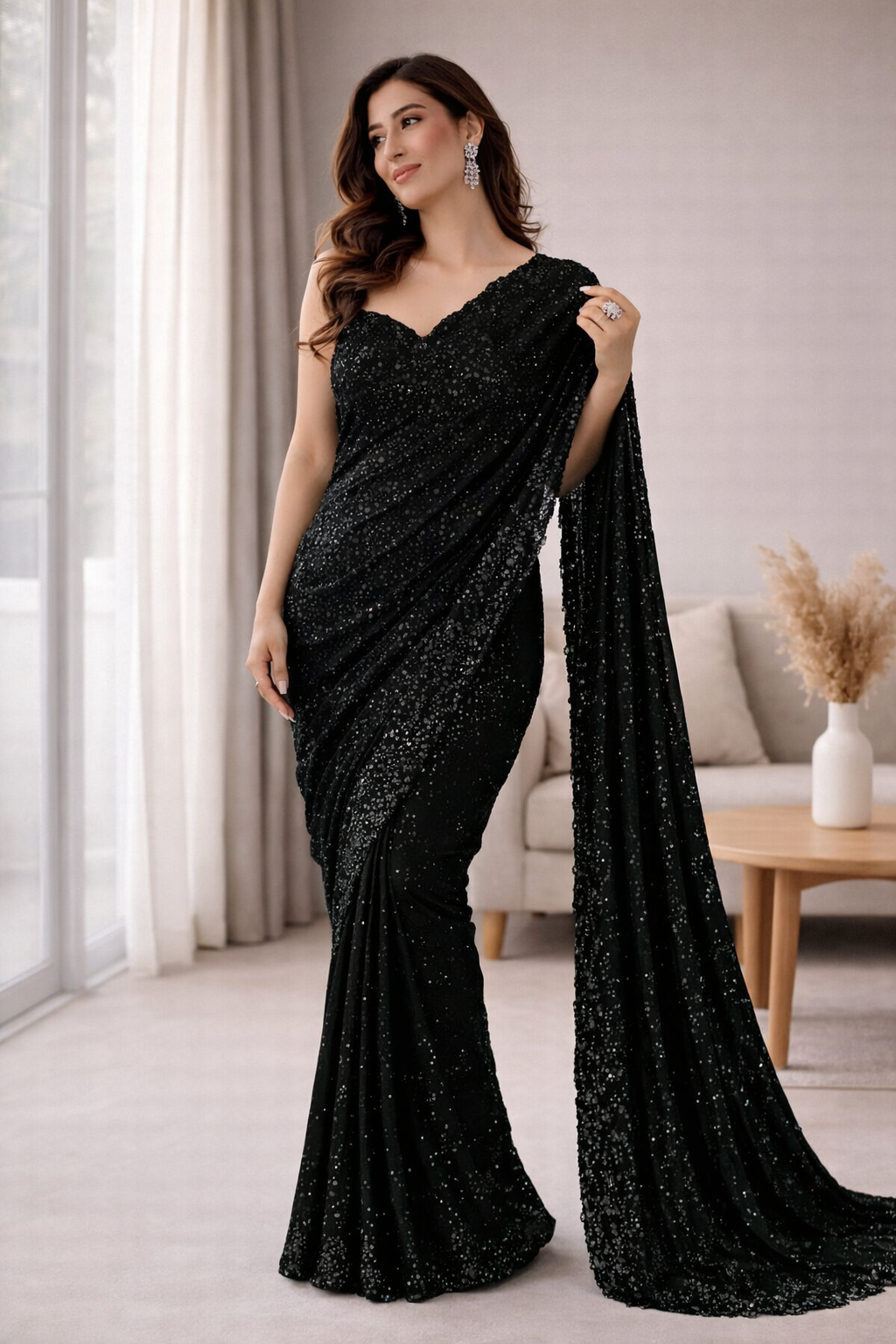 Georgette Saree with Heavy Sequinned Embroidery & Zalar Pallu