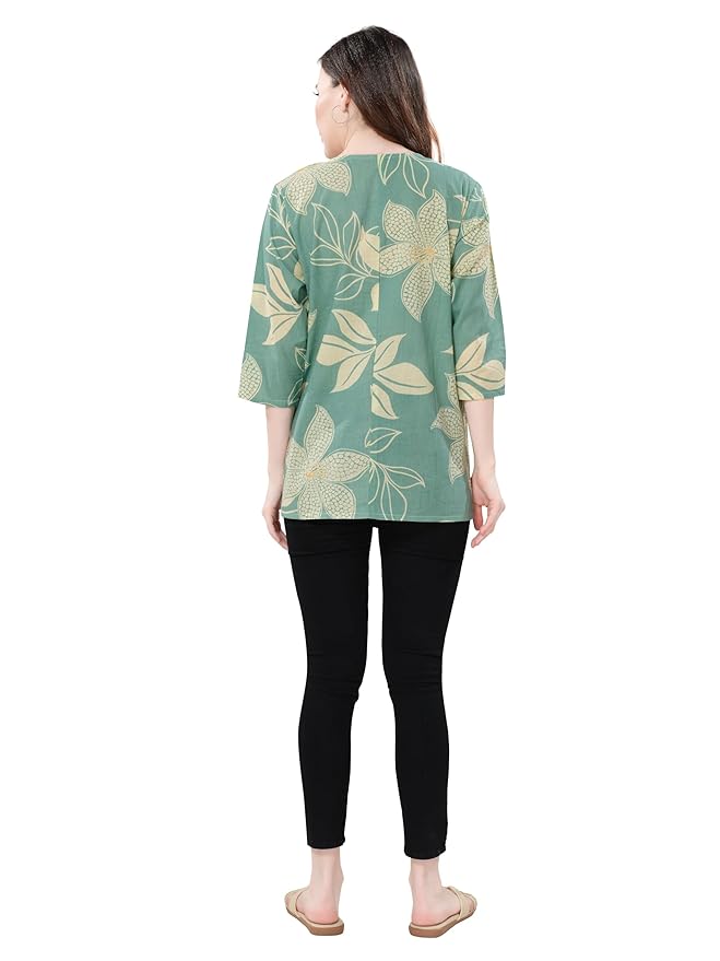 Owl Sky Women’s Pure Cotton Jaipuri Printed Short Kurti – Free Size Blue