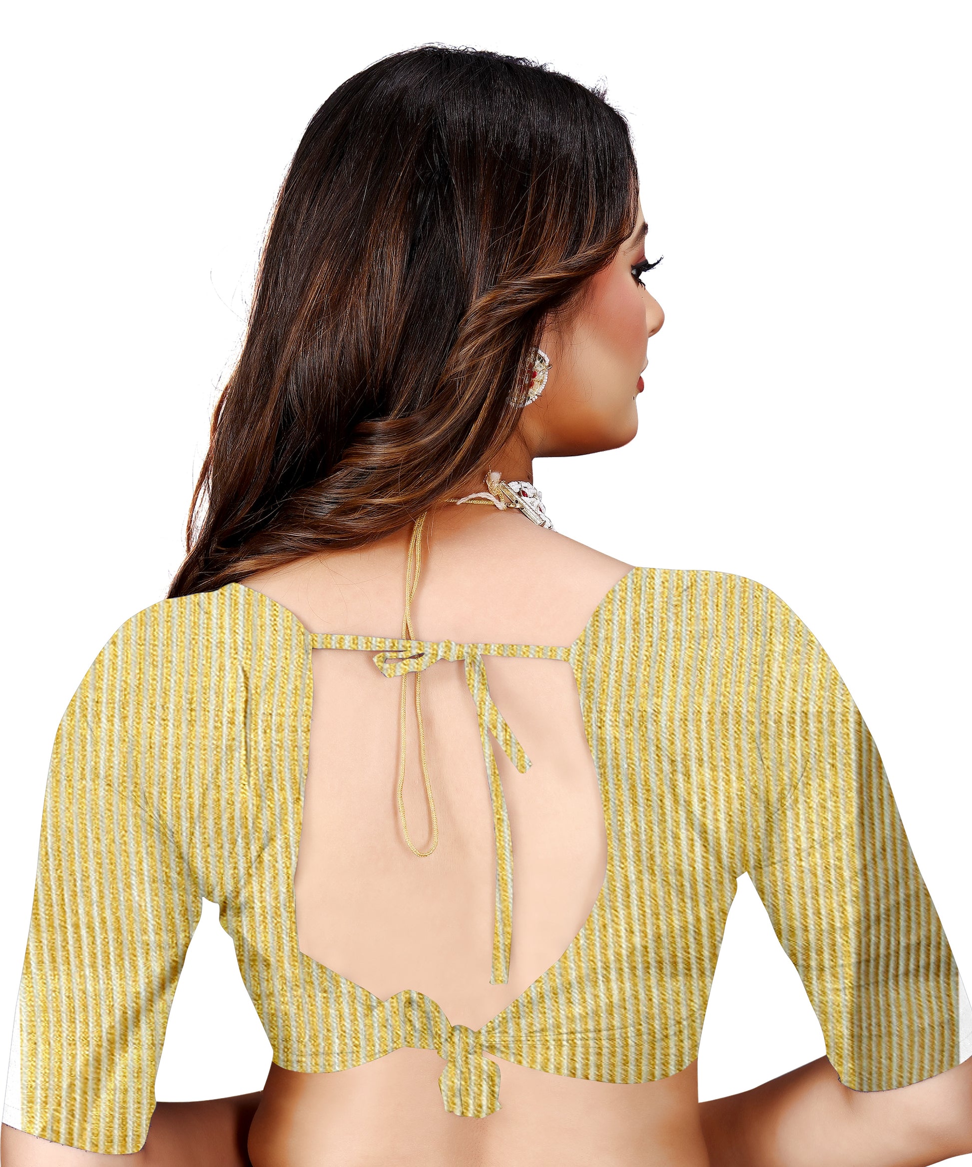 OWLSKY, SASSY & STYLO Women's Elegant Linen Weaving Saree with Unstitched Blouse Piece Light Gold