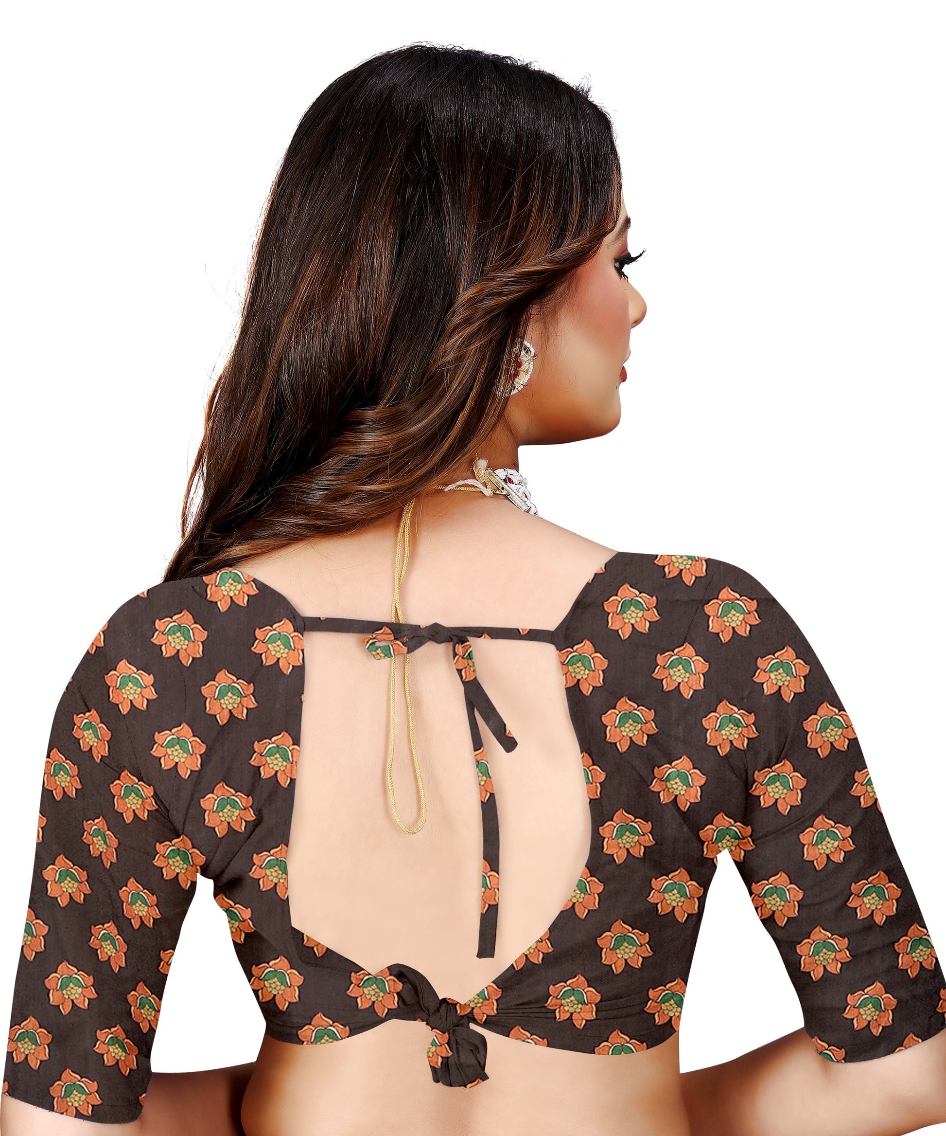 Make a stunning statement with this exquisite designer blended silk saree that beautifully combines tradition with contemporary style. The saree features a captivating pink body adorned with delicate floral motifs, complemented by an intricate black border showcasing traditional elephant designs. The elaborate border work displays masterful craftsmanship with its detailed vine patterns and artistic elements. The contrasting brown blouse piece features elegant floral patterns, perfectly matching the saree's aesthetic. The pallu showcases a mesmerising arrangement of traditional motifs, including ornate elephants and floral designs against a black background, creating a striking visual impact. This saree is perfect for special occasions, festivals, and formal events. The rich silk fabric ensures comfortable draping and a luxurious feel. The thoughtful colour combination of pink, black, and brown makes it versatile for various occasions. Style it with traditional jewellery to complete your elegant ethnic ensemble.